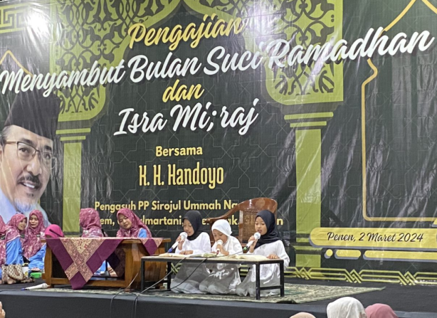 Sebagaimana tahun-tahun sebelumnya, dalam memperingati Isra Mi’raj dan jelang bulan suci Ramadhan 1445 H, Masjid Baitul Hasanah menyelenggarakan pengajian peringatan Isra Mi’raj dan Menjelang Ramadhan yang diikuti oleh masyarakat Penen, tegal Penen, tegal Mulyo dan Gondangan. Pengajian yang diselenggarakan di Aula Masjid Baitul Hasanah pada hari Sabtu 2 Maret 2024 tersebut, menghadirkan penceramah K.H. Handoyo pengasuh dari Pondok Pesantren Sirojul Ummah Ngemplak Asem, Umbulmartani, Ngemplak, Sleman, Yogyakarta.
